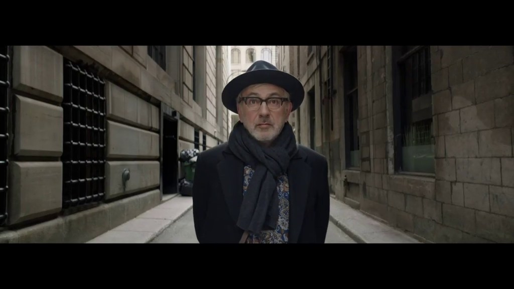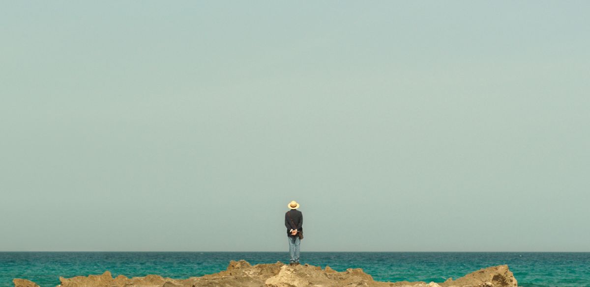 يرتبط العالم السردي للفيلم بشخصية بطله إيليا سليمان، الذي يتوسط الكادرات عادة، يبدو دوما بهيئة واحدة وملابس ثابتة تقريبا طوال الفيلم، قد تختلف نسبيا ألوانها لكن لا يختلف طرازها، قميص ومعطف متوسط الطول وبنطلون من الجينز وقبعة من الخوص، لا يتغير الأمر إلا في أمريكا في زيارته لنيويورك لتصبح الملابس كلها سوداء كالحداد الغاضب، والإدانة الصامتة، فهو دائما صامت، يراقب بلا تعبير، فهو مراقب سلبي للعالم، بما في ذلك من فقدان للدهشة يعكس عزلة نفسية وإحباطا عميقا، فلا يأخذ العالم بمأخذ الجد، يعقد يديه عادة وراء ظهره معطيا ظهره للعالم، وهي الوضعية التي يلتقطها بوستر الفيلم كلقطة رئيسية، موقف ساخر غير متورط من العالم كنوع من الرفض الهادىء له، واللامبالاة اليائسة، كمن يقول هات ما عندك لم أعد أكترث، بما يذكرنا بشخصية “حنظلة” الشهيرة لفنان الكاريكاتير الفلسطيني الشهير ناجي العلي، شخصية الطفل الذي لا يكبر بل يرفض محتجا أن يكبر حتى العودة، ابن النكبة والهزيمة عاقد الذراعين في الخلف صامتا، وكأن إيليا امتداده المعاصر.