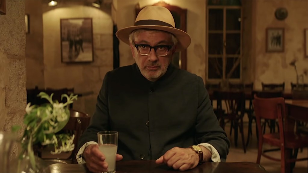 يسيطر الإحساس السيزيفي على البطل، بعودة في النهاية لمشهد البداية، الذي يجلس فيه في حديقته ليلا متطلعا للسماء، كما نجده دائما ينظر إليها ويتطلع من شرفته في كل البلاد، كمنفذي أمل وحلم، تتكرر في الفيلم حالة تعاقبية بين طرفين، ليل أو نهار، أو بدء وانتهاء، ونلاحظ تكرارا لثيمات سردية، منها تكرار صوت أجراس الكنائس وصوت سارينات الإسعاف في كثير من الأماكن، كحالة تنبيهية واستغاثية، ويكثر أيضا تواجد الماء بأشكال مختلفة، سواء بسكبه في سقي النباتات والتبول وهطول المطر، كحالات تنفيسية، أو احتسائه خاصة من خلال الخمر، كحالة تغييبية، لتأتي جملة مؤثرة هامة على لسان رفيق سكر له مع نغمات أغنية خمرة الحب لصباح فخري”أنتم الفلسطينيون غريبون، العالم كله يسكر لينسى لكنكم الشعب الوحيد الذي يسكر ليتذكر” ليرقص بعدها على أنغام الأغنية رقصة ثملة كالذبيح.